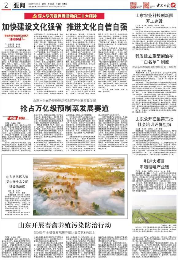 全会对繁荣发展文化事业和文化产业作出了全面部署,提出了明确要求。近年来,山东坚持以文弘业、以文惠民、以文通心,着力当好高质量发展排头兵,展现共同富裕新作为,树立“好客山东 好品山东”好形象。“我们将深入学习贯彻二十大精神,落实全会部署要求,深耕人文沃土,加强‘山东文脉’建设,加大文化遗产保护力度,推进文物保护利用‘十大工程’,开展‘齐鲁文艺高峰’计划,实施文化数字化战略,推进‘山东手造’工程,培育一批千亿级优势文化产业集群。建好用好国家文化公园,以沿黄河、大运河、齐长城、黄渤海四大文化体验廊道建设为重点,不断深化文旅融合,做强‘好客山东 好品山东’品牌。加强文明交流互鉴,汇聚文化自信自强的强大合力,全面促进社会主义文化繁荣兴盛,在新征程上彰显新担当、塑造新形象、展现新作为。”省文化和旅游厅党组书记、厅长,省文物局局长王磊说。