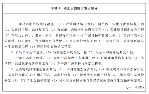 2.提升生态系统碳汇能力。深入推进科学绿化试点示范省建设,实施森林质量精准提升工程,加快鲁中南和鲁东山地丘陵区两大生态屏障建设,提高森林质量。强化森林资源保护,切实加强森林抚育经营和低效林改造。完善湿地分级管理体系,实施湿地保护修复工程,通过退养还滩、生态补水等措施,修复退化湿地,增强固碳能力。到2030年,全省森林覆盖率完成国家下达任务。(责任单位:省自然资源厅、省水利厅、省发展改革委)