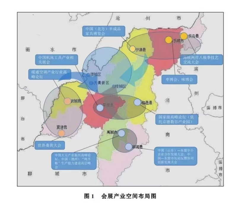 围绕齐河县、禹城市,打造会展产业南部“高点”;围绕宁津县、乐陵市、庆云县,打造会展产业北部;围绕武城县、夏津县,打造会展产业西部“亮点”;围绕临邑县、平原县,打造会展产业东部“强点”。
