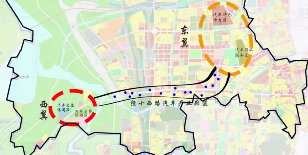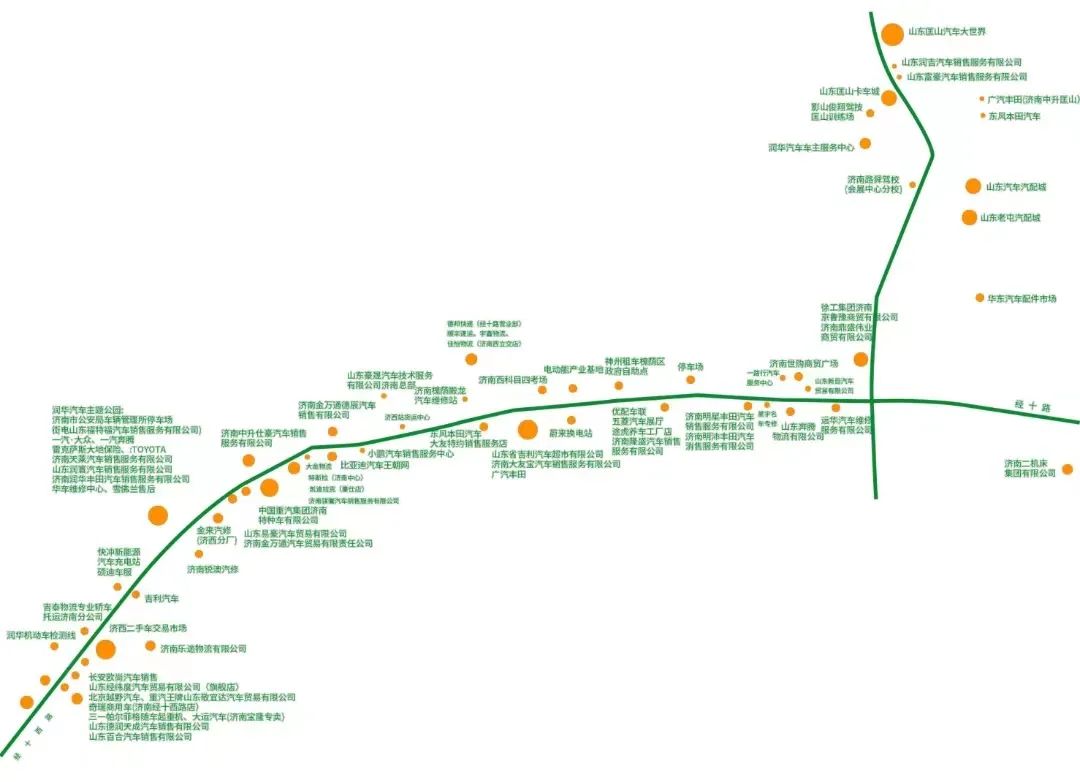 为将产业优势转化为发展胜势,槐荫区大力创建“经十西路汽车产业带”品牌,打造江北最大汽车销售和汽车后市场综合服务中心。汽车产业带规划范围东起腊山立交桥,沿经十西路至长清界,北起济齐路沿二环西路至刘长山路,规划面积 39 平方公里,重点高质量构建“一廊、多点、两翼、四区”的总体空间格局。