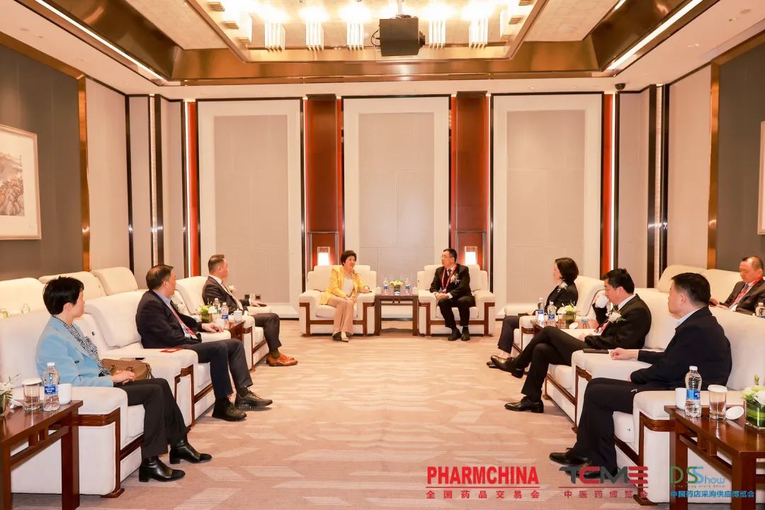 活动期间,陈金国副主任实地考察了展会现场各场馆运营情况并会见了展会主办方国药集团党委副书记、国药励展董事长杨柳一行。陈金国表示,生物医药产业是山东省“十强产业”的重要组成部分,是青岛市重点布局发展的24条产业链之一,青岛拥有完善的医药工业体系,知名制药企业众多,制定了《青岛市生物医药及医疗器械产业园发展若干政策》,欢迎国药集团、国药励展及相关企业继续深化与青岛合作。