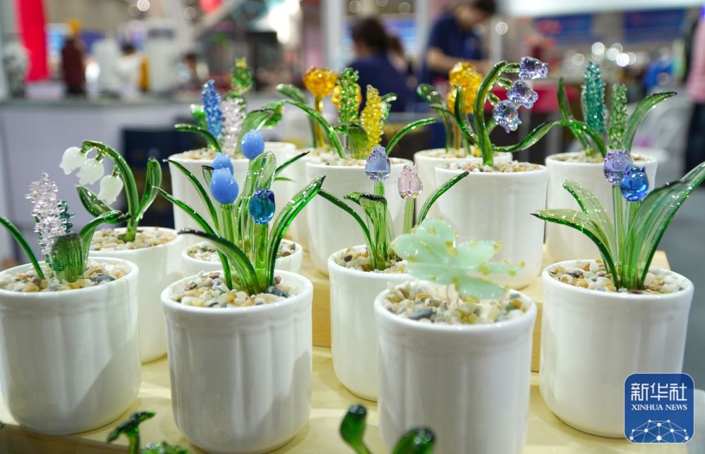 5月12日在2023山东工艺美术博览会暨“山东手造”精品展上拍摄的琉璃工艺作品。