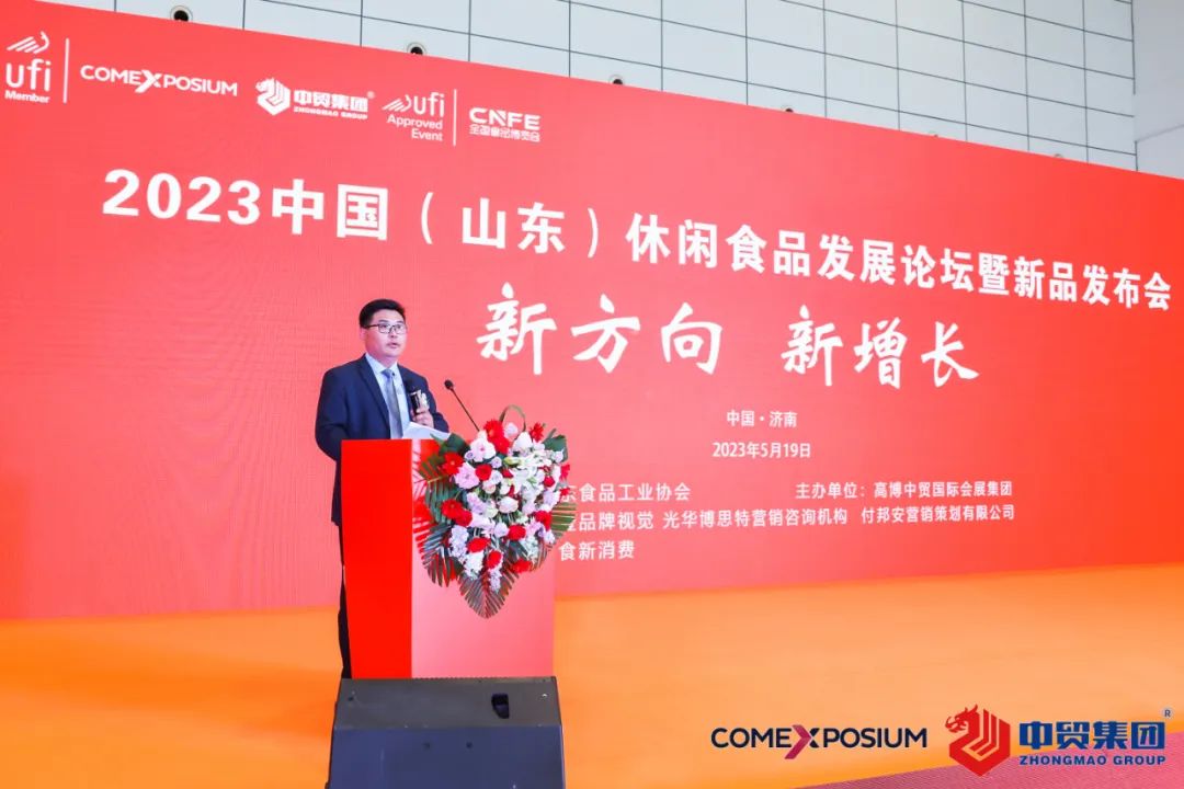 “新方向·新增长——2023中国(山东)休闲食品发展论坛暨产品推介会”由高博中贸国际会展集团主办,缔壹品牌视觉、光滑博思特营销咨询机构、付邦安营销策化有限公司协办,酒食新消费承办。