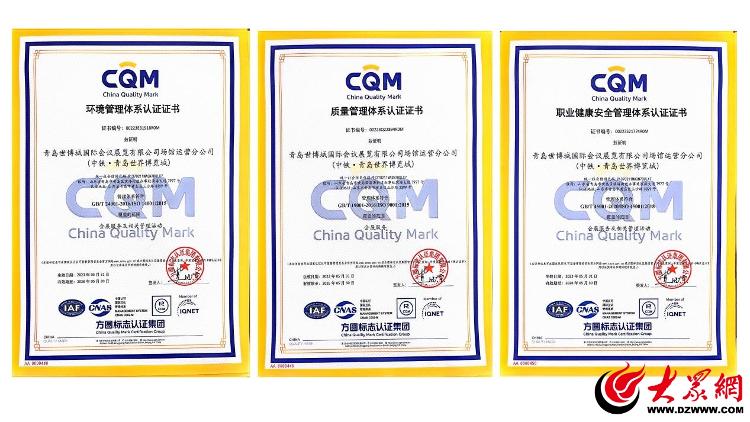 近日,中铁·青岛世界博览城经第三方权威机构认证审核,顺利通过QEO体系认证,成功获得质量、环境和职业健康安全管理三体系认证证书。标志着中铁·青岛世界博览城会展运营管理体系的标准化、专业化、科学化水平迈上了新台阶。