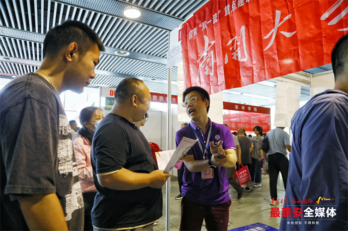 在山东农业大学的展位前,不少家长拿着学校现场发的招生宣传单页认真研究。“山东农业大学的招生专业各具特色,有像农学、植物保护、园艺、动物科学这样的传统优势专业,也有像生物科学类、食品科学与工程、农业资源与环境这样的特色专业,还有经济管理类专业、计算机类及全国首批大数据专业、土木及建筑类专业等强势专业。”现场学校招生负责人向记者介绍。