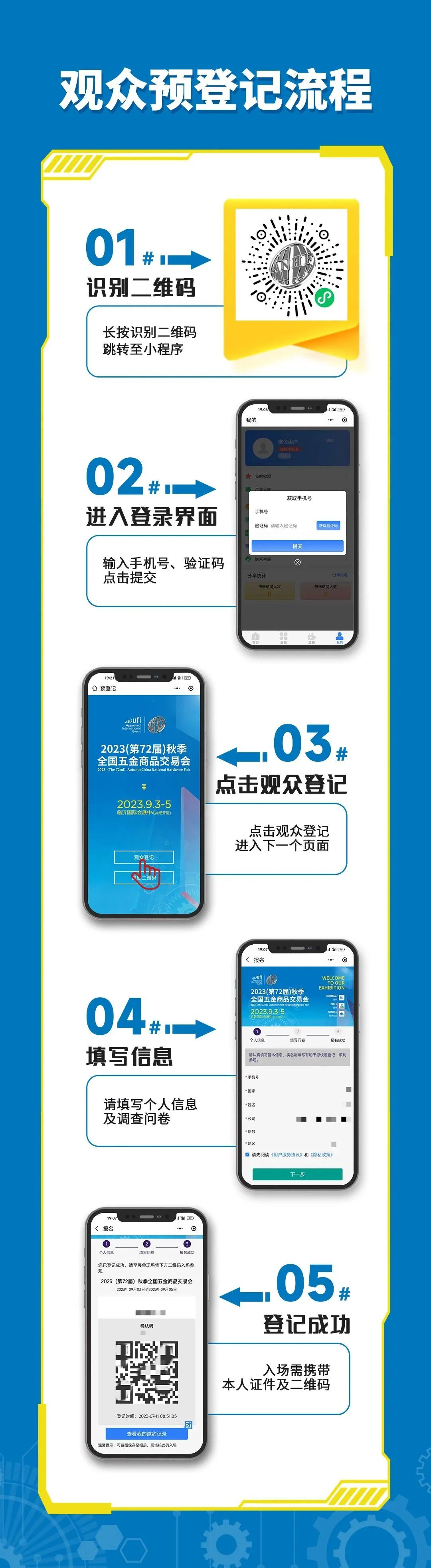 72载历久弥新,肩负五金行业发展使命砥砺前行——2023(第72届)秋季全国五金商品交易会(以下简称:秋交会)将于2023年9月3日-5日,在山东·临沂国际会展中心盛大启幕。本届秋交会实行观众线上预登记方式,未按要求完成预登记者,现场将无法入场参观。