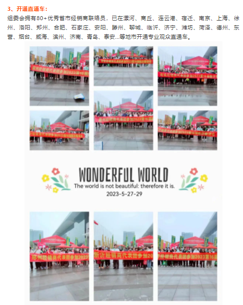 政府部门批准举办+行业协会大力支持+专业办展机构精心策划周密部署;高起点定位扎实推进。组委会办展经验丰富、配套服务完善,拥有“80+优秀省市经销商联络员,120+新媒体、300+行业机构、50万+经销商大数据,根据展商需求定向邀约。专业观众享受专车接送管住宿、补助津贴、商务对接及现场签约等福利。