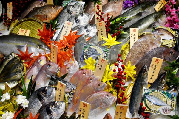 10月25日在渔业博览会上拍摄的参展企业水产品摆台。