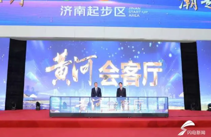 活动最后,济南市委常委、济南新旧动能转换起步区党工委副书记、管委会主任孙斌,济南市委常委、宣传部部长戴龙成共同为“黄河会客厅”正式揭牌。