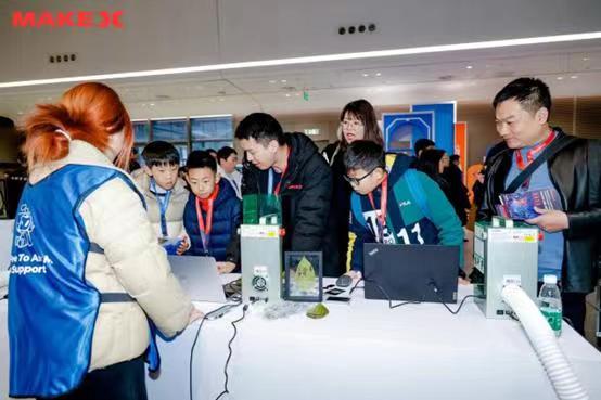 在企业文化展示区的激光类产品展示区域,展出了xTool品牌的产品P2、M1和F1,还设置了使用激光雕刻机DIY定制T恤的体验活动。在现场可以使用xTool的产品创作出属于自己的纪念品以及购买心仪的已经雕刻好的精美案例,如叶雕、金属名片、金属项链、保温杯、抱枕等。独特的创意与高效的创造工具结合,吸引了一大批观众围观激光雕刻机的加工过程和加工成果,大家纷纷对创造出来的作品表示称赞。xTool在总决赛第一天的爆火,恰恰是童心制物(Makeblock)成立十年一直致力于降低创造的门槛,激发创造的灵感,“让更多人享受创造的乐趣”的真实反映。