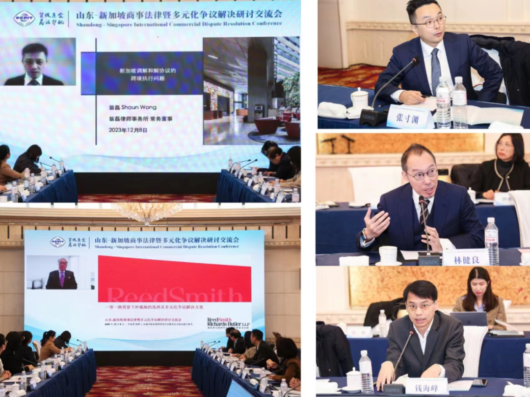 为落实新加坡-山东经济贸易理事会工作要求,发挥贸促会“桥梁、纽带”作用,12月8日,由山东省贸促会、山东国际商会主办,山东省贸促会商法中心承办的“山东-新加坡商事法律暨多元化争议解决研讨交流会”在济南召开。山东省贸促会会长、山东国际商会会长孟向东,山东省司法厅副厅长、一级巡视员朱晓峰,中国贸仲仲裁院副院长、山东分会秘书长解常晴出席活动并致辞,山东省贸促会秘书长、二级巡视员,山东国际商会副会长陈彤主持会议。