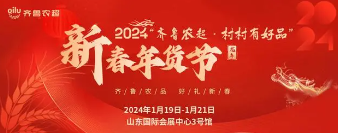 采购年货不用东奔西走,属于咱山东老乡的年货节——2024“齐鲁农超·村村有好品”新春年货节将于1月19日-21日,在山东国际会展中心(山东省济南市槐荫区日照路1号)3号馆盛大举办!