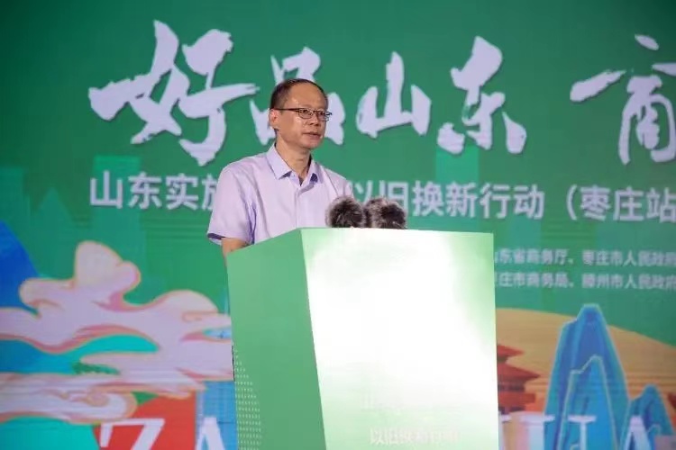枣庄市人民政府副市长张龙江在致辞中表示,枣庄市认真落实国家、省有关方案要求,强化统筹协调、部门协同、政企协作,多方筹措资金,推出优惠措施,让“真金白银”直达消费者,加快建立“去旧更容易、换新更愿意”的有效机制。今年1—6月,全市社会消费品零售总额实现了平稳增长,增幅高于全国平均1.8个百分点,为全市经济持续回升、巩固向好做出了积极贡献。