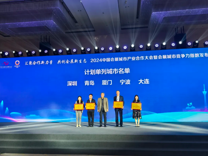 由中国会展经济研究会主办的2024中国会展城市产业合作大会于11月1日在成都召开,会上发布了《2023年度中国城市会展业竞争力指数报告》和“2023中国最具竞争力会展城市”。会上,我市被授予“中国最具竞争力会展城市”,城市专业展览竞争力列全国第六,会展业综合竞争力居计划单列市第二、全国第九。