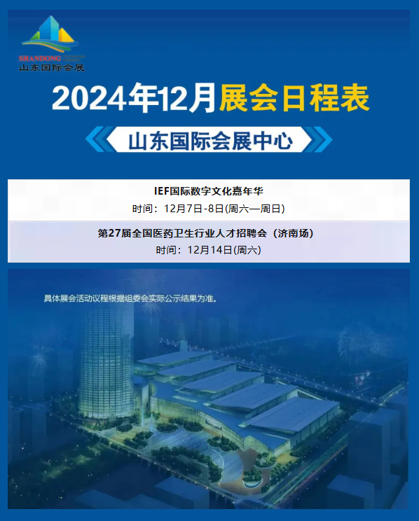2024年12月山东国际会展中心展会日程表 2024-12-02 09:59:55 本站 网络 604 上一篇 2022年中东(迪拜)国际汽车零部件及售后服务展览会超百家中国企业亲临现场 下一篇 第四届山东省城市建设博览会将于13日至15日在滨举办