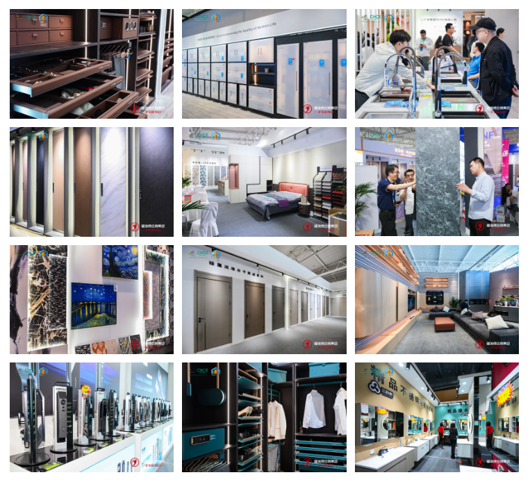 板材、智能五金、家具配件及化工原料、线条、封边条、指纹锁、PET、PVC贴面材料、家装用板包装材料、智能灯光、智能控制、涂料、胶黏剂、地坪材料等;