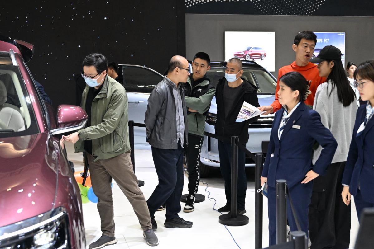 4月12日,2025齐鲁春季车展暨第51届齐鲁汽车展览交易会在山东国际会展中心迎来周末购车人潮。油车、混动、纯电,各类车型端上展台,市民看车、选车、购车尽享交易会盛宴。齐鲁晚报·齐鲁壹点记者 戴伟