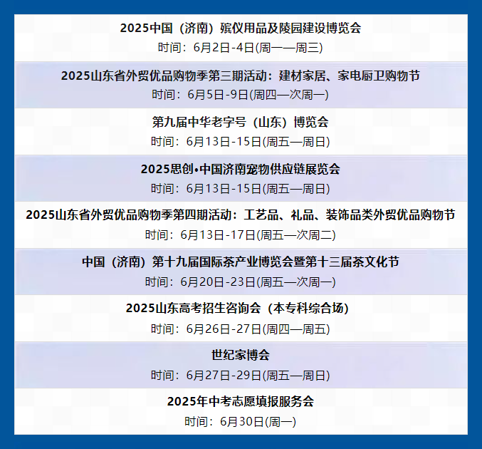 2025年6月山东国际会展中心展会日程表 2025-06-03 09:28:19 本站 网络 220 上一篇 2022年中东(迪拜)国际汽车零部件及售后服务展览会超百家中国企业亲临现场 下一篇 2025国际青年大会开幕,淄博友城40年“大放异彩”!