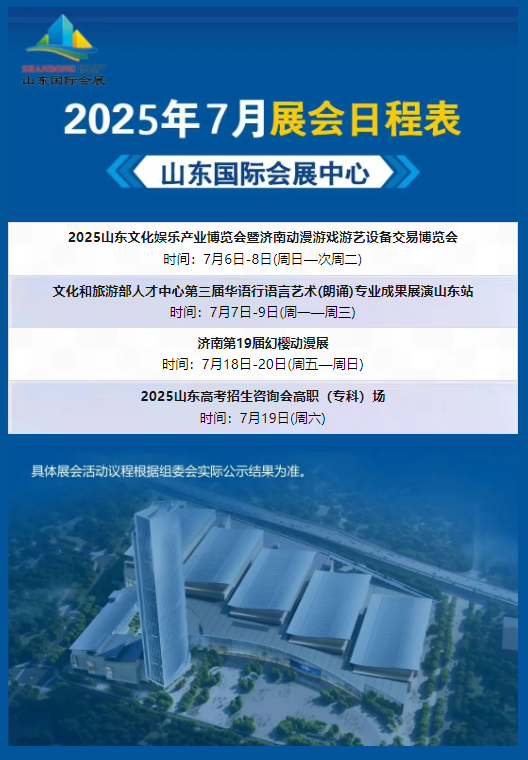 2025年7月山东国际会展中心展会日程表 2025-06-30 10:02:03 本站 网络 210 具体展会活动议程根据组委会实际公示结果为准。 上一篇 2022年中东(迪拜)国际汽车零部件及售后服务展览会超百家中国企业亲临现场 下一篇 成效显著!第四届RCEP区域(山东)进口商品博览会日均观众1.5万人次