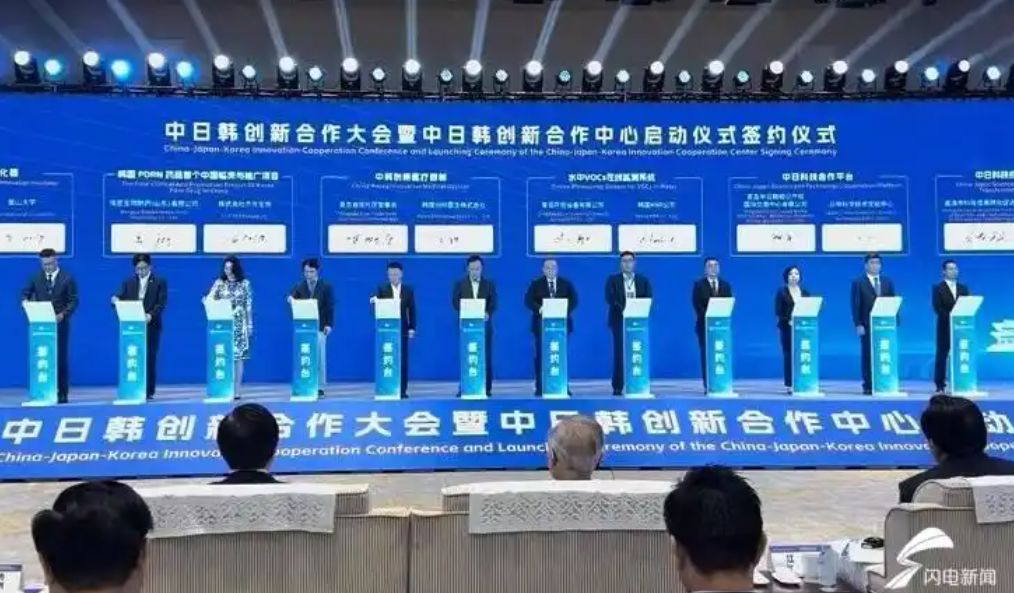 活动首日,中日韩创新合作大会正式开幕,会上举行了中日韩创新合作中心启动仪式,标志着中心正式启动建设。同时,现场观看了中日韩创新合作中心宣传片,为有关顾问代表颁发了聘书,向2025“共创共赢”中日韩青年创新合作对接赛总决赛获奖代表进行了颁奖,举行了合作项目签约、合作中心启动、主旨演讲等活动。